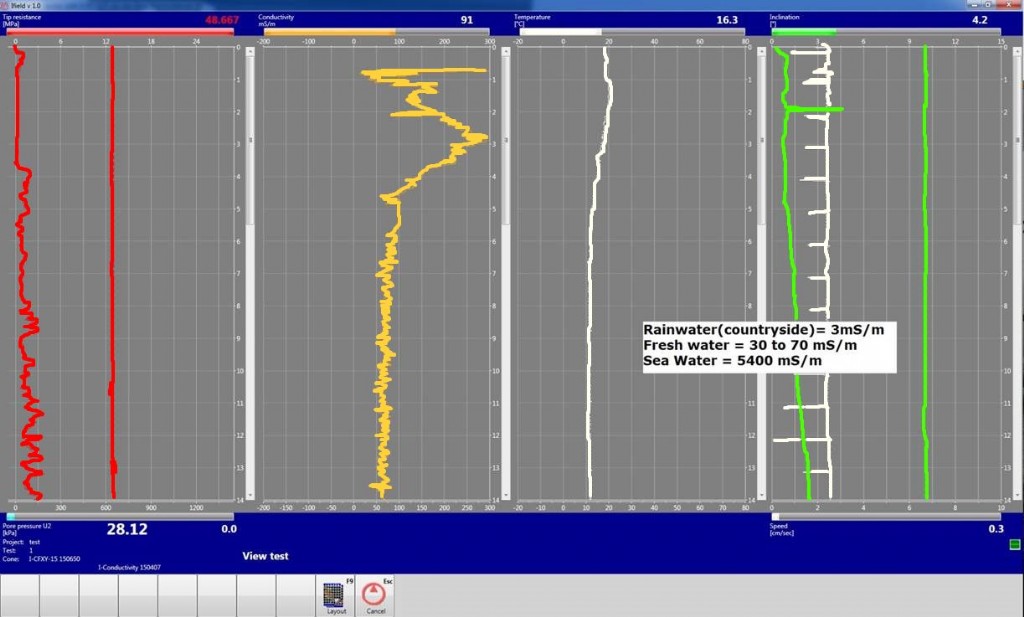 Icone Conductivity wordt gebruikt voor het meten van variaties in de elektrische geleidbaarheid van de bodem. De output maakt het mogelijk overgangen van zand/kleilagen te detecteren, zout-dragende lagen te volgen en verontreinigingen te lokaliseren.