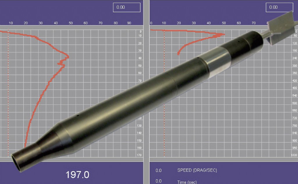 Afhankelijk van de variant kan de rotatiesnelheid binnen de aangegeven range geselecteerd worden. Een optionele stevige behuizing beschermt de vin; op de vereiste diepte wordt de vin naar buiten gedrukt en na de test weer teruggetrokken.