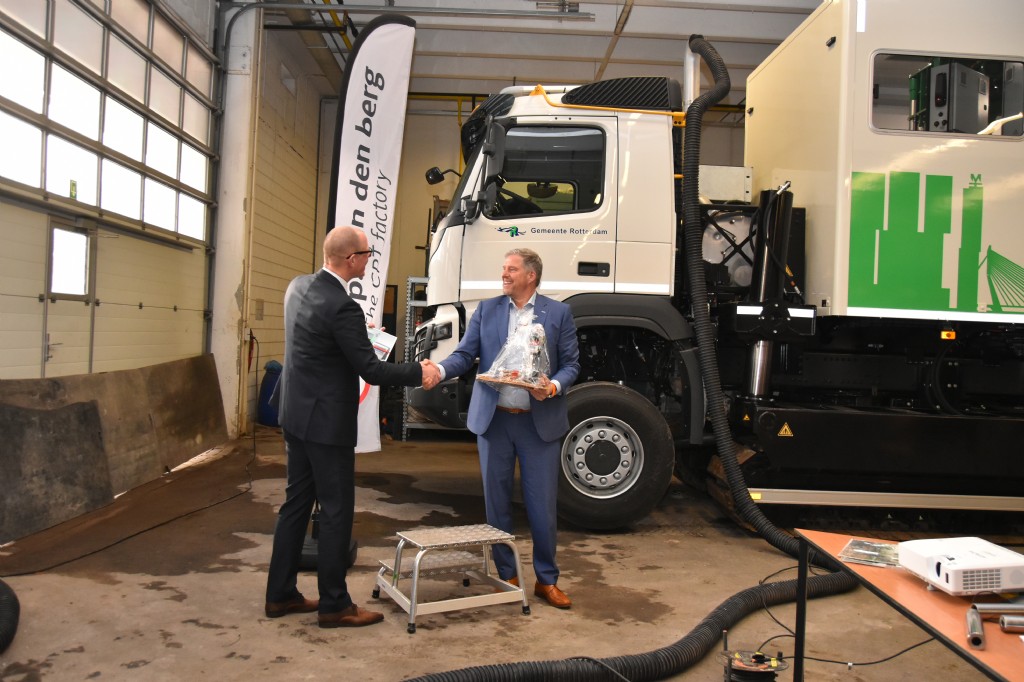 De eerste in zijn soort en gericht op de toekomst: onze Track-Truck met COSON-ST. Deze hypermoderne machine voor handsfree sonderen werd op vrijdagmiddag 18 januari door de Veldmeetdienst en Laboratoriumgroep (VLG), onderdeel van het Ingenieursbureau van de gemeente Rotterdam, feestelijk in gebruik genomen. Nederland vormt daarmee opnieuw het toneel voor een innovatieve en vooruitstrevende toepassing van sondeertechnologie en dat past uiteraard bij het land dat de bakermat vormt van deze methode voor in-situ bodemonderzoek. En het is zeker niet voor het eerst dat wij bij dergelijke innovaties de ontwerper en bouwer zijn, en ook niet voor het eerst dat de VLG van het Ingenieursbureau van de gemeente Rotterdam hierbij dan de lancerende klant is. Een feestelijke ingebruikname was dus wel op zijn plaats en na de eerste sondering laat de VLG al blijken zeer enthousiast te zijn over hun nieuwe aanwinst. “Het systeem werkt eenvoudiger, sneller en ook nog eens stiller in vergelijking tot de traditionele sondeersystemen.”, aldus één van de sondeermeesters.