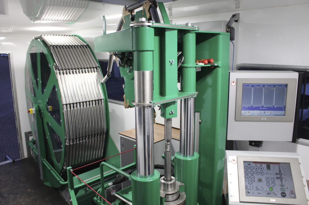 Bij A.P. van den Berg hebben we de visie dat de sondeercabine zich als werkomgeving zal ontwikkelen van een werkplaats naar kantoorplek. Daar waar de sondeermeesters zich voorheen vooral bezighielden met handmatige technische handelingen om de productie gaande te houden, zal nu een engineer het productieproces enkel bewaken en de rest van de tijd “op de wagen” kunnen vullen met het verwerken van data en ontwerp- of andere kantoor-gerelateerde werkzaamheden. Ter ondersteuning van deze visie hebben we de ST-technologie ontwikkeld. Dit gepatenteerde Single-Twist (ST) systeem maakt met het, tevens gepatenteerde, hydraulisch aangedreven indrukapparaat COSON een volautomatische sondeercyclus mogelijk. Met slechts een druk op de knop wordt de cyclus gestart waarbij de sondeerstreng, met aan de punt het meetinstrument, in één continue beweging door de COSON de grond in wordt gedrukt. Hierbij wordt deze sondeerstreng op een vernuftige wijze geheel automatisch vanaf een haspel uit afzonderlijke, maar met elkaar verbonden ST-buizen opgebouwd. Na het bereiken van de einddiepte zal de drukbeweging wijzigen in een trekbeweging en wordt de sondeerstreng weer automatisch afgebouwd en op de haspel gerold.