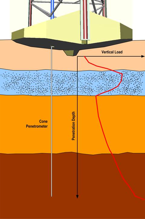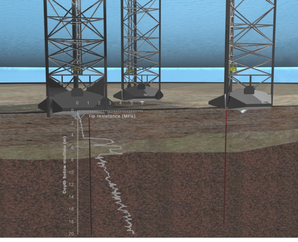 Vanaf het platform zijn operators in staat met de geïntegreerde sondeerapparatuur de zeebodem onder elke poot in kaart te brengen en de potentiële plaatsingsrisico’s te inventariseren. Door deze aanpak kan elke verandering of afwijking van de uiteindelijke platformlocatie ten opzichte van bekende boorgaten direct bepaald worden. Deze nauwkeurige informatie is essentieel wanneer laterale variatie in de bodemgesteldheid op de locatie verwacht wordt. Bij deze toepassing vindt het bodemonderzoek plaats terwijl de poten contact hebben met de zeebodem. Zodra de poten voldoende stabiel zijn geplaatst werkt de sondeerapparatuur - die in de poot kan worden vastgezet of erin op en neer kan worden bewogen - onmiddellijk en meet o.a. de weerstand van de bodem. Hieruit kunnen de sterkte eigenschappen van de zeebodem bepaald worden en verdere interpretaties worden gemaakt.
